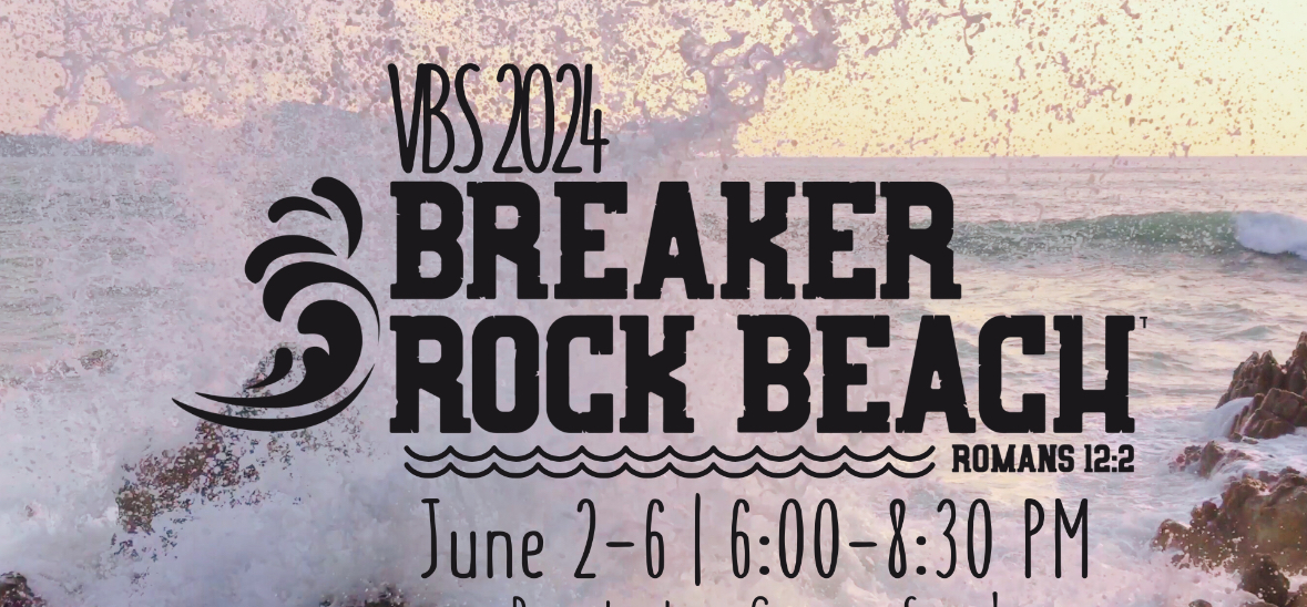 Vacation Bible School is open to kids who have completed PreK - 6th grade. At Breaker Rock Beach kids will be challenged as they discover that God's truth never changes, everyone needs Jesus and learn to speak the truth in love. Join us June 2-6 at 6pm adventure awaits each day.