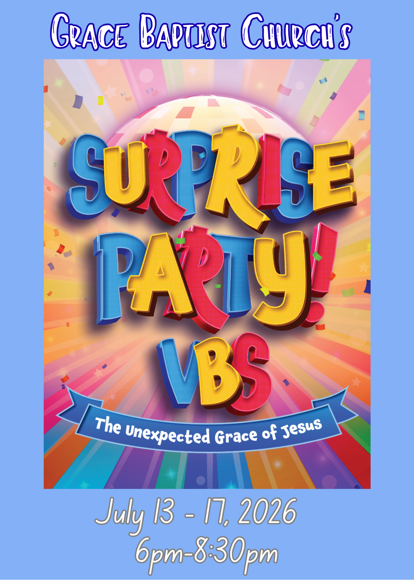 Come join the party! Surprise Party VBS at Grace Baptist Church!